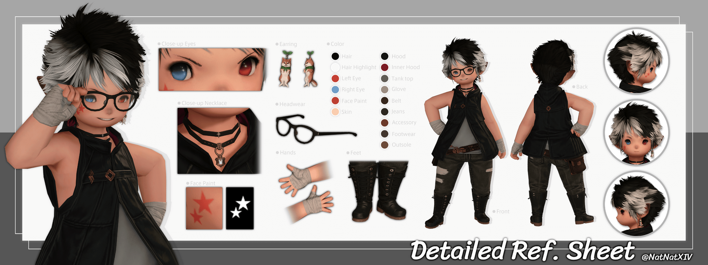 You’ll also receive the unedited screenshots used in the sheet and screenshots of your character in A-pose from 8 directions.